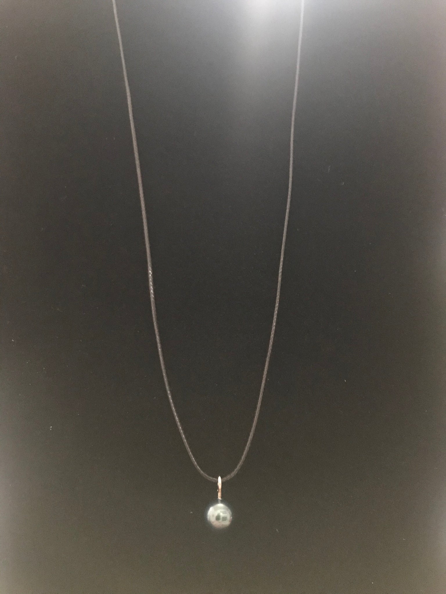 Swarovski TahitLK pearl 8mm drop silver metals hand made 22 inches black nylon wax cord necklace